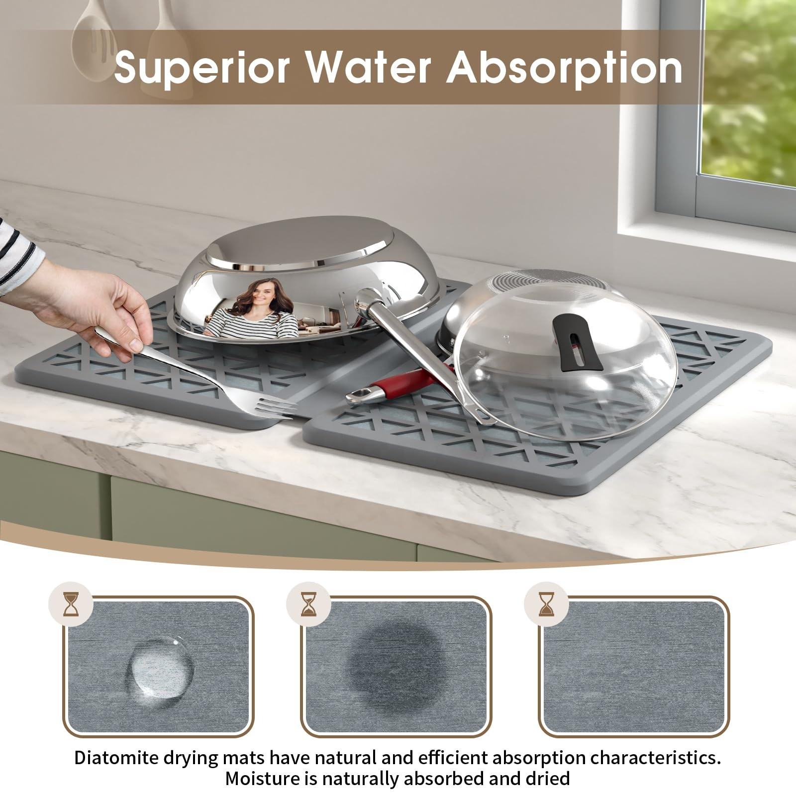✔ Fast-Absorbing Stone Material: Made from high-quality absorbent stone that dries dishes quickly, keeping your kitchen organized and mess-free.
